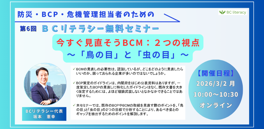 NEW 第6回BCリテラシーセミナー:今すぐ見直そうBCM