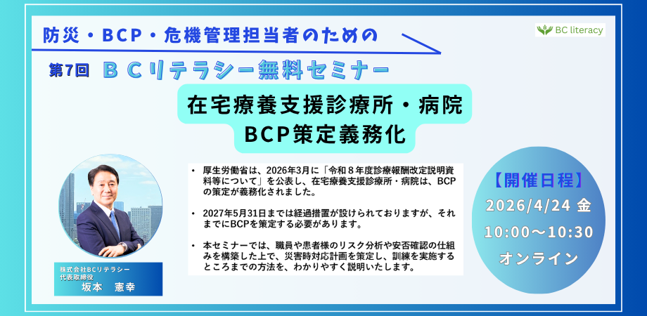 第7回 BCリテラシーセミナー:在宅療養支援診療所 BCP策定義務化